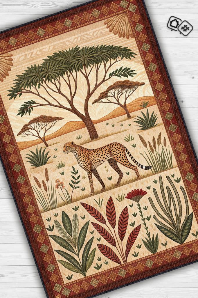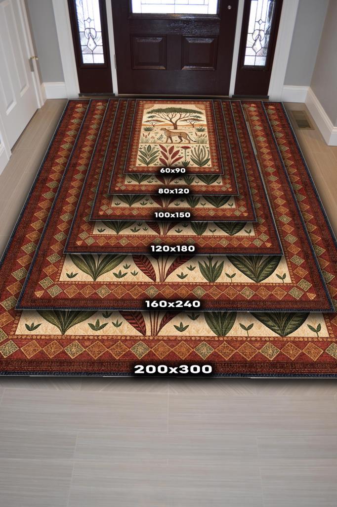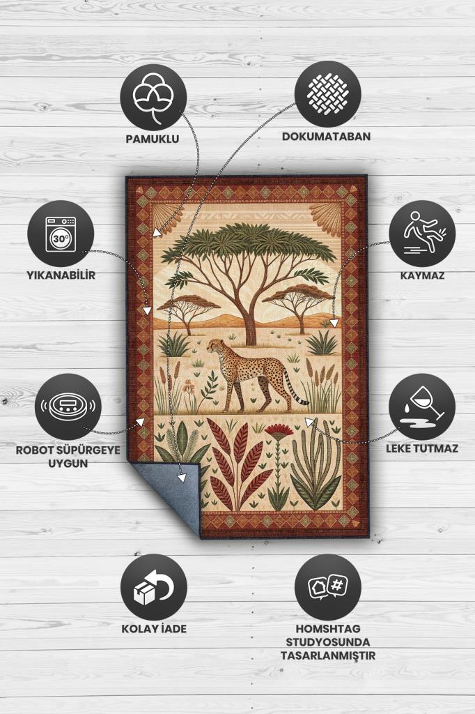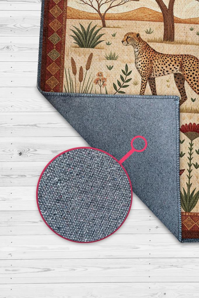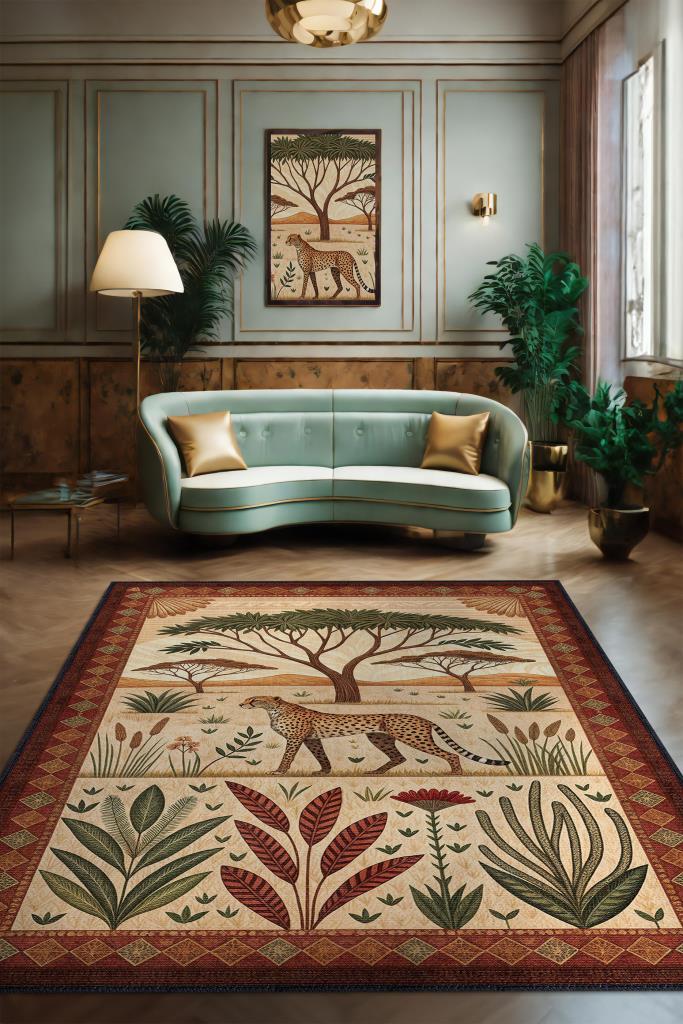Nuh'un Gemisi Koleksiyonu Çita Temalı Çiçekli Çok Renkli Bordürlü Şık Konsept Halı